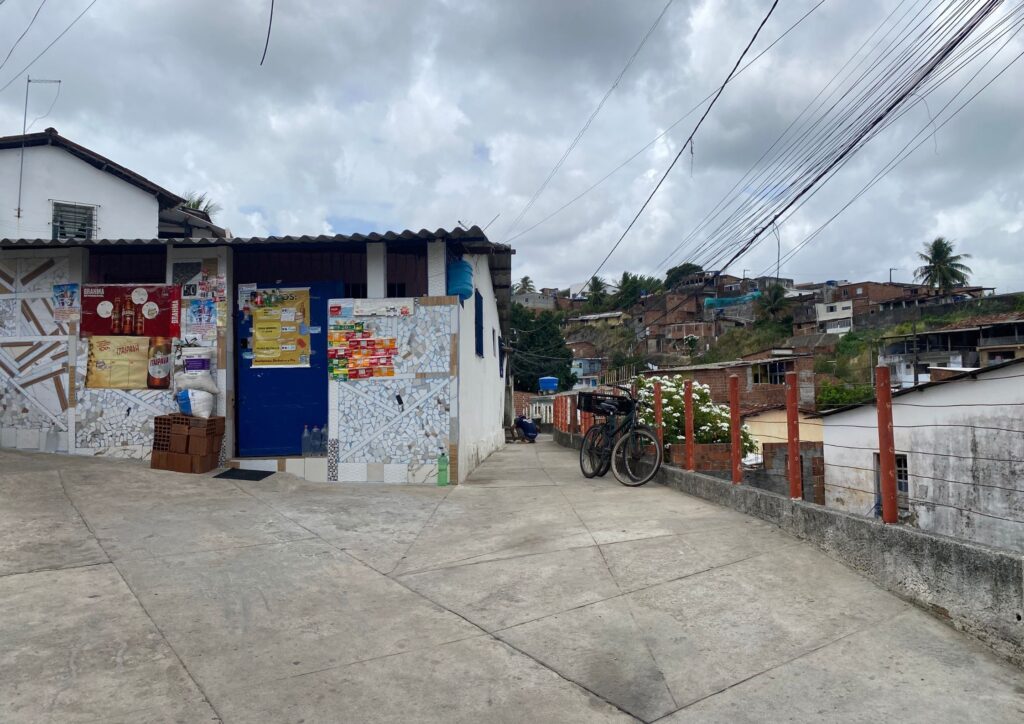 “Eu cheguei aqui no começo de 85. Então, vim morar aqui e era cheio de mato, não tinha luz, era a base de candeeiro, cozinhava com lenha. Isso aqui tudinho era barro. A escadaria era feita de barro, a rua era feita de barro, não tinha calçamento nenhum, os moradores fizeram.”